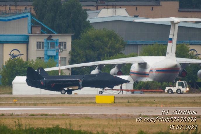 Novi lovac prekriven ciradom slikan je dok su ga vozili na aerodrom Žukovski kod Moskve, gde će u utorak biti otvoren dogadjaj pod nazivom MAKS-2021.