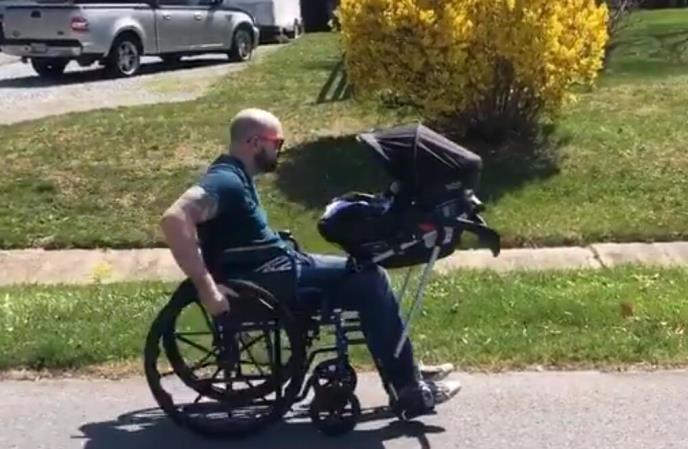 Naime, oni su napravili konstrukciju za invalidska kolica na koja može da se postavi auto-sedište da bebu, tako da ovaj otac može svoju bebu da šeta bez pomoći supruge.