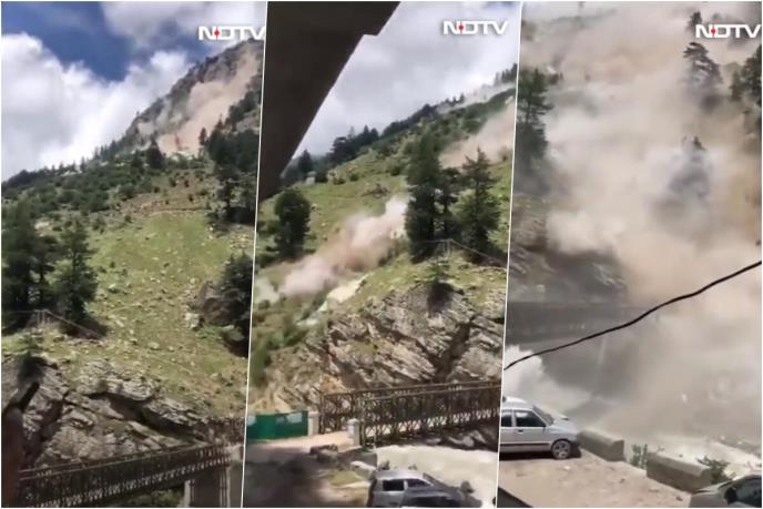 Na dramatičnim snimcima objavljenim na društvenim mrežama vidi se kako se stene obrušavaju ka dolini i prema mostu.