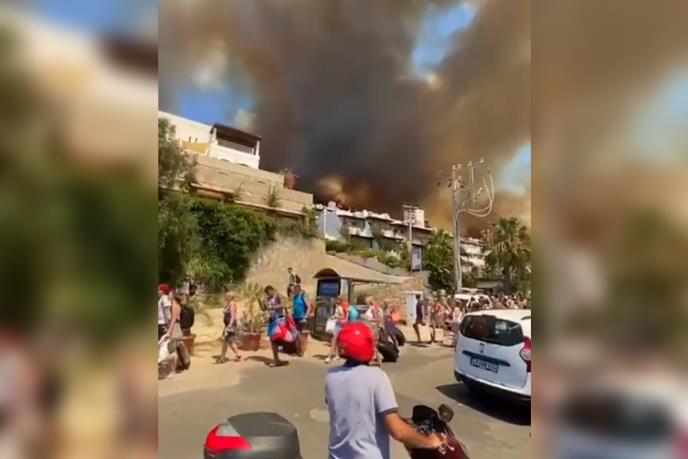 Turisti u Turskoj požurili su danas u susret spasilačkim brodovima nakon što im je rečeno da se evakuišu iz nekih hotela u egejskom letovalištu Bodrum zbog neposredne opasnosti od požara, izvestili su turski mediji.