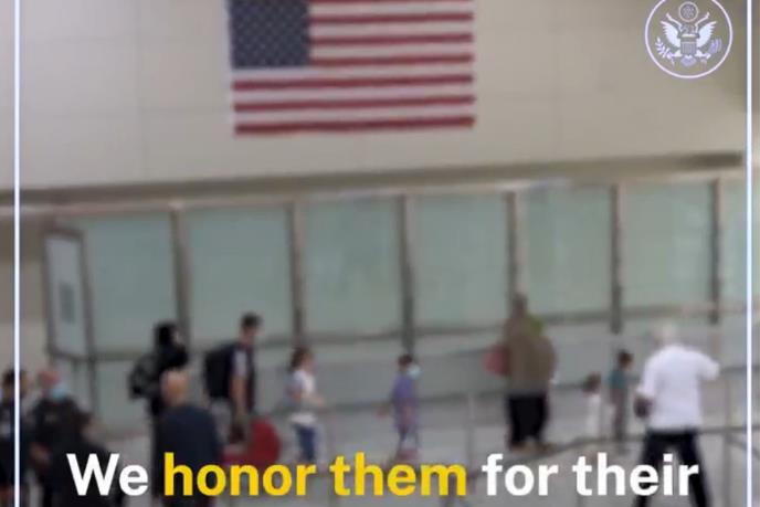 "Pozdravljamo prvu grupu avganistanskih specijalnih imigranata koji se prijavili za njihov novi dom u Sjedinjenim Državama. Odajemo im počast za njihovu uslugu u očuvanju bezbednosti Amerikanaca i njihov rad na izgradnji svetlijeg Avganistana".