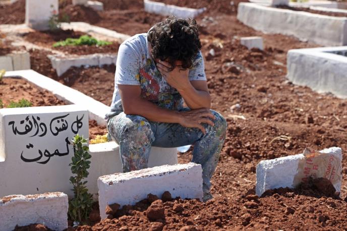 Umetnik Asmar posetio je na Hesinov grob u Banišu. Uprkos bolu što je izgubio mladog pomoćnika, slikanje ga podseća na to da se Sirijci i dalje nadaju o miru i pravdi.