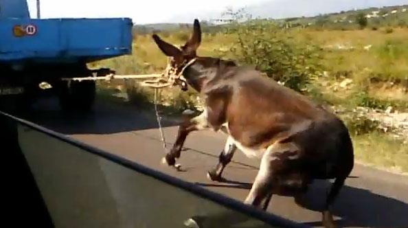 PODGORICA - Magarac vezan za kamion u pokretu koji se muči i zadnjim nogama proklizava po asfatu... - ove gotovo neverovatne scene dogodile su se na periferiji glavnog grada Crne Gore, a snimak okrutnog mučenja životinje postavljen je na kanalu Jutjub.