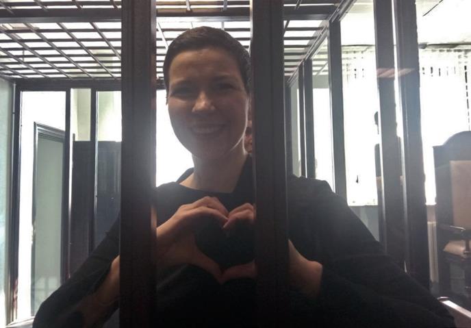 Kolesnikova se danas pojavila na sudu iza staklenog zida i nasmešila novinarima. Jedna od tri žene koje su se suprotstavile Lukašenku, Kolesnikova je prstima oblikovala srce i taj gest je bio simbol prošlogodišnjih protesta.