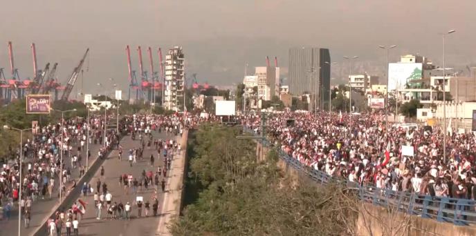 Hiljade ljudi okupilo se u centru Bejruta i krenulo ka luci, mašući libanskim zastavama.