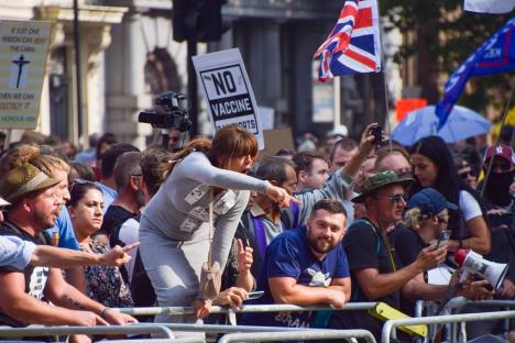 U jednom postu na Fejsbuku, Parker je podelio fotografiju sa antivakserskih protesta u Londonu uz komentar "sjajno" i emodžije tapšanja.