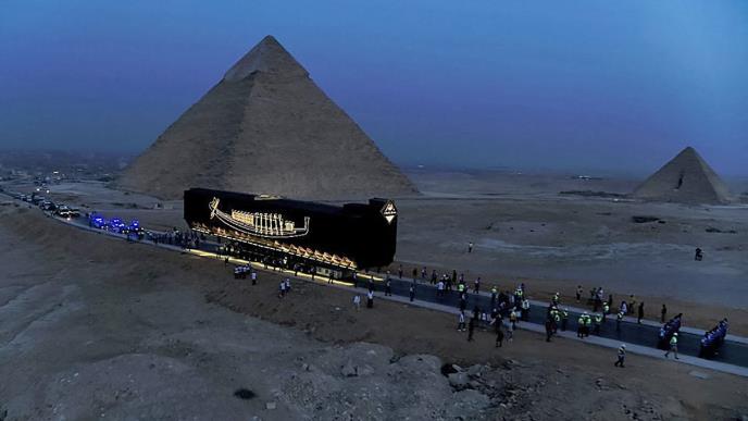 "Nakon što je prešao Gizu na pametnom vozilu, prvi brod kralja Keopsa, otkriven 1954. godine na južnom kraku Velike piramide završio je svoje dugo putovanje do Velikog egipatskog muzeja", navelo je ministarstvo u saopštenju.