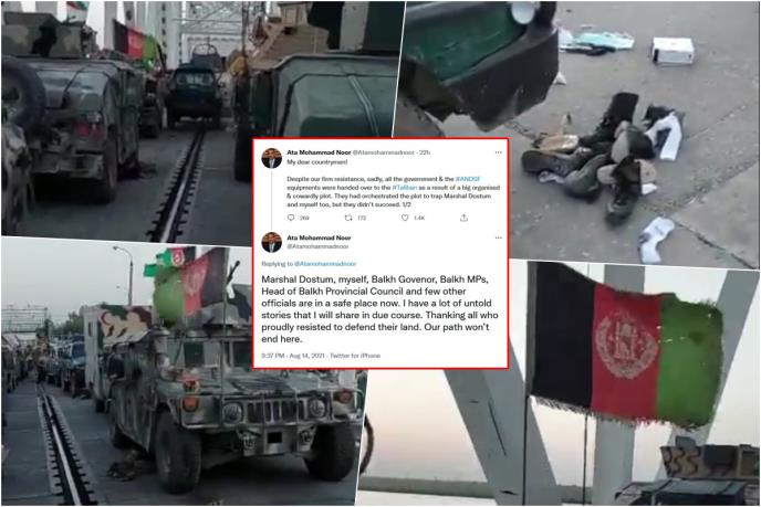 Uprkos našem čvrstom otporu, nažalost, sva vladina i oprema ANDSF predata je Talibanima kao rezultat velike organizovane i kukavičke zavere. Oni su organizovali zaveru da uhvate maršala Dostuma i mene, ali nisu uspeli. Maršal Dostum, ja, guverner Balkaha, poslanici i šef pokrajinskog saveta Balkaha i nekoliko drugih zvaničnika sad su na sigurnom mestu. Imam mnogo neispričanih priča koje ću s vremenom podeliti. Zahvaljujem se svima koji su se ponosno borili u odbrani svoje zemlje. Naš put se ovde neće završiti.", napisao je Nor.