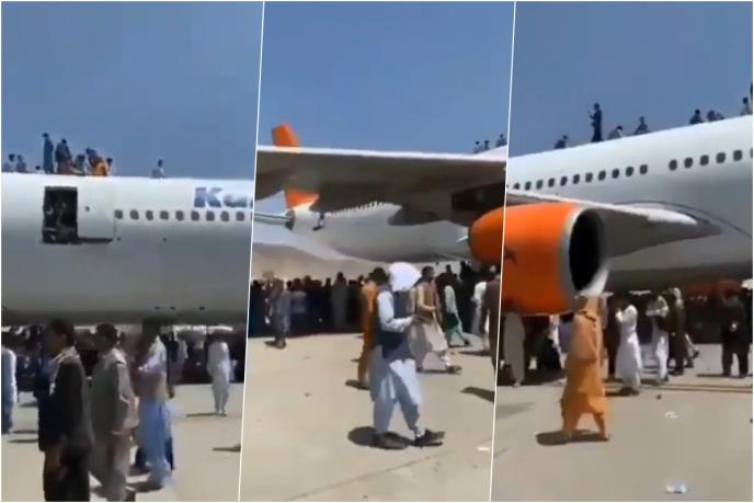 Na snimcima se vidl očaj ljudi koji žele da spasu svoj život, ali po svemu sudeći avioni su prepuni ljudi, a sa ovim se još više otežava njihova evakuacija.