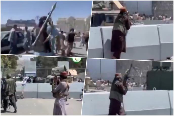 Na snimcima, koji su se pojavili vide se pripadnici šerijatske milicije koji pucaju u vazduh, pokušavaju automatskim oružjem da udaraju ljde od koji neki beže preko betonskih ograda i prepreka u nadi da će spasti kožu, dok većina počinje da se udaljava od aerodroma, gde su od jutros ponovo obnovljeni evakuacioni letovi iz ove zemlje u kojoj su od nedelje popodne talibani preuzeli vlast.