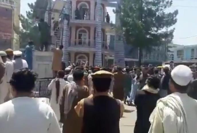 Na društvenim mrežama mogu se videti snimci demonstranata koji se penju na vrh spomenika kako bi postavili avganistansku zastavu.