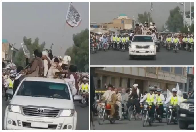 Na društvenim mrežama pojavio se i snimak svećanog dočeka lidera talibana u Kandaharu. Ulicama ovog grada talibansko rukovodsttvo je prošlo na pik apovima u pratnji desetina motociklista koji su vozili sa leve i desne strane prazne ulice. Intersantno je da među onima koji su vozili mopede bilo je i pripadnika nekadašnje saobraćajne policije koji su nosili bele kacige i žute prsluke.