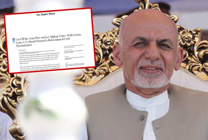 Elelm, tog 15. februara u listu LA Times objavljen je bio članak Ašrafa Ganija pod naslovom "Zaustavite naoružavanje i pustite Avganistance da se ujedine: Sa odlaskom Sovjeta, SAD bi trebale zahtevati referendum za samoopredeljenje".