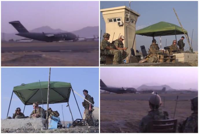 Centralna komanda američki oružanih snaga čija zona odgovornosti punih 20 godina je Avganistan i koja i danas rukovodi operacijom masovne evakuacije izbeglica, američkih državljana, stranaca i službenika stranih diplomatskih misija, objavila je video snimak kontrolog tornja, odnosno marinaca koji kontrolišu poletanje i sletanje vojnih transportnih aviona.
