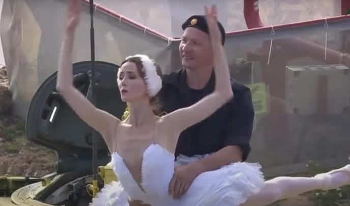 Na snimku koji se pojavio na JuTjubu prvo se vidi nekoliko tenkova koji se približavaju jedan drugom, a zatim iz dva otvora izlaze plesači koji na tenku počinju da izvode baletsku tačku,