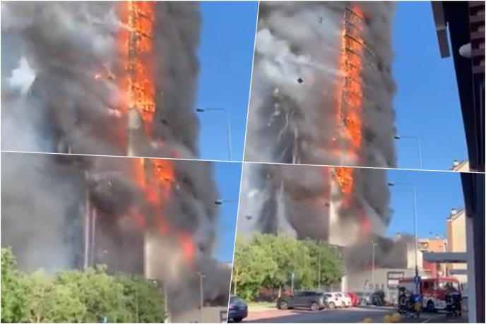 Kako javljaju italijanki mediji požar je buknuo na 15 spratu i odande se proširio na celu zgradu u kojo živi oko 70 porodica.