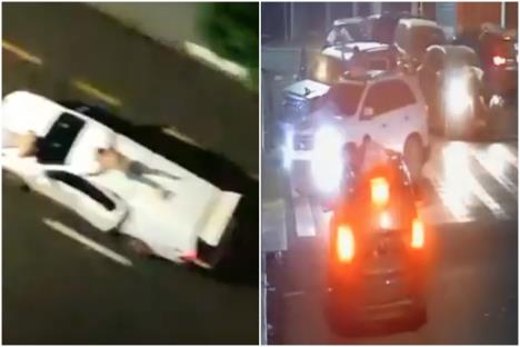 TV novinar Juri Makri objavio je video za koji kaže da prikazuje dva automobila koji razbojnici koriste za beg. Na prvom je osoba vezana za krov, a na drugom za haubu, dok se na jednom može videti kako osoba čuči na haubi.