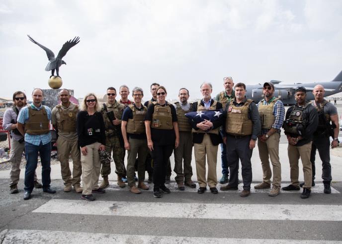Na fotografiji koju je objavio Blinken vidi se ambasador SAD Ros Vilson sa američkom zastavom u rukama smotanom u trogugao i službenici ambasada, koja je načinjena najverovatnije na kabluskom aerodromu pred poltanje transportnim avionom iz Kabula.