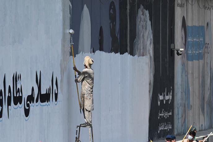 Talibani su počeli da zemenjuju murale na ulicama prestonice Avganistana Kabula slikama njihovih zastava i islamističkim sloganima.
