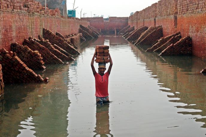 Radnici u Bangladešu (Daka) rade težak fizički posao, po ceo dan nose pečene cigle na glavi i prelaze reku preko dasaka, kako bi ih pripremili za izvoz do građevinskih kompanija izvan Dake, a tog posla nisu pošteđene ni žene.