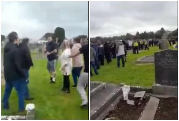 Zbog masovne tuče na sahrani kovčeg preminule žene je pao na pod dok su šokirani ožalošćeni bili primorani da se brane.