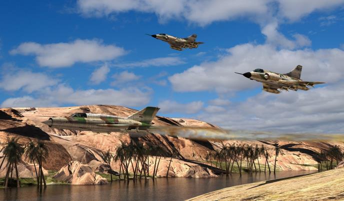 Ujutro 7. oktobra RV Izraela je trebalo da pokrene masovne vazdušne napade, protiv egipatske PVO, ali je to otkazano zbog sirijskog napada na južni Golan. Do večeri 7. oktobra Egipćani su ovladali desnom obalom Kanala i većim delom Sinajskog poluostrva. U tim borbama Irael je izgubio 150 tenkova, a Egipat 20 tenkova i 280 ljudi. Istog dana na sirijskom frontu, Izrael gubi 36 aviona od dejstava PVO Sirije (30 A4 i 6 F-4). Gubitke im je naneo RS SAM6. Ono što je zanimljivo je to da je veoma mali broj pilota uspeo da se spase katapultiranjem. U jednom trenutku Izraelci su gubili iznad Golanske visoravni tri od pet aviona, koji su kretali u napad. Nakon što su ovladali Kanalom i većim delom Sinaja, Egipćani iznenada zaustavljaju dobro koordinisan napad. Ova fatalna egipatska greška promeniće ishod rata. Dana 8. oktobra avioni F-4E RV Izraela su napali sirijske aerodrome. Istog dana su bombama pokušali da napadnu egipatske pontone na Sueckom kanalu. Na četiri MiG-17 su dejstvovali vatrom.