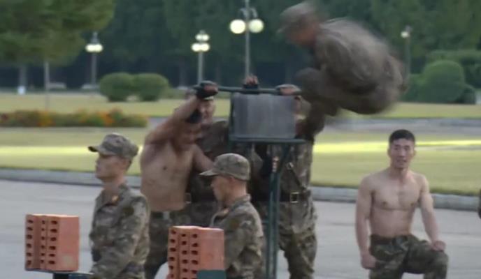 Severnokorejski mediji objavili su snimak vojnika koji pokazuju svoje borbene veštine i sposobnosti tako što glavama i rukama razbijaju betonske blokove, savijaju čelične šipke...