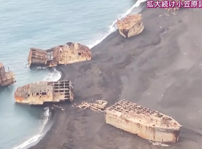 Na obali ostrva Ivo Džima tokom potresa zemlje uzrokovanog aktivnošću vulkana Suribači, pojavio se niz brodova iz Drugog svestkog rata.