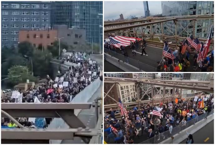 Nekoliko dana nakon što je gradonačelnik najavio da će svi državni službenici, osim zatvorskog osoblja, morati da dobiju vakcinu do petka ili da budu stavljeni na neplaćeno odsustvo, oko 5.000 raspaljenih demonstranata marširalo je preko Bruklinskog mosta do Menhetna.