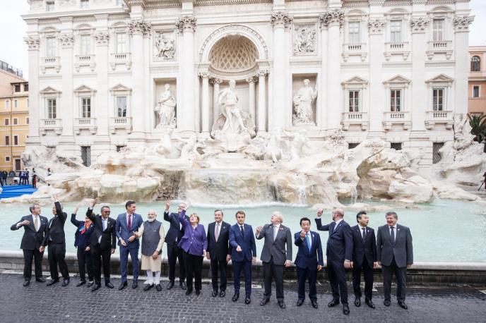 Vođe najvećih svetskih ekonomija otišle su u oblazak znamenitosti Rima među kojima i Fontane di Trevi pre nego što su se vratili danas da usaglase svoje konačno saopštenje o klimatskim promenama i završe dvodnevni skup.