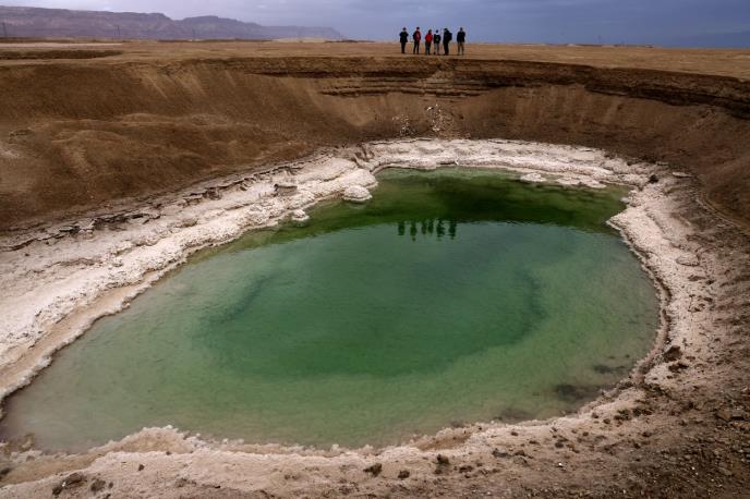 Itai Gavrieli, naučnik sa Geološkog instituta u Izraelu, kaže da se hiljade rupa formira sa svake strane Mrtvog mora. Ti opasni krateri, koji su istovremeno "jedinstveni i čudesni", direktna su posledica isušivanja jezera 1970ih zbog devijacije rijeke Jordan i sve veće eksploatacije minerala.