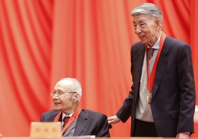 Dizajner aviona Gu Sungfen i nuklearni stručnjak Vang Dadžung primili su medalje i sertifikate na godišnjoj konferenciji posvećenoj dodeljivanju Nacionalne nagrade za nauku i tehnologiju, koja je juče održana u Velikoj dvorani naroda u Pekingu.