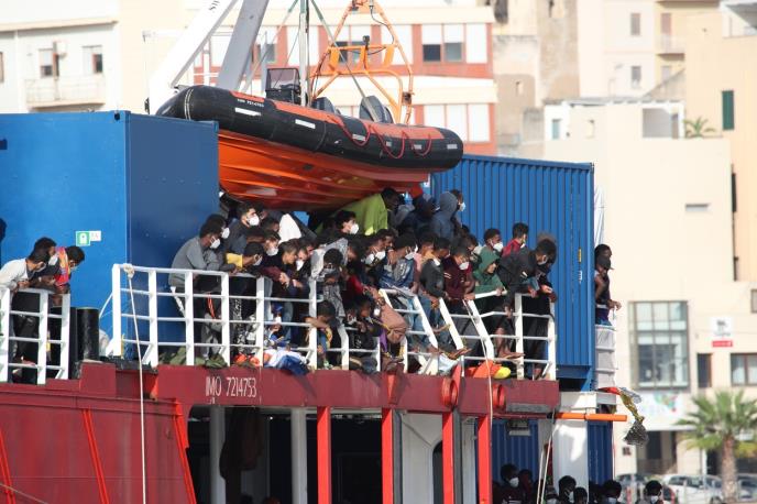 Više od 800 migranata, koje je humanitarni brod spasao iz Sredozemnog mora, iskrcalo se u nedelju u luku Trapani na Siciliji, a većina će biti prebačena na dva broda koja će služiti kao karantin.
