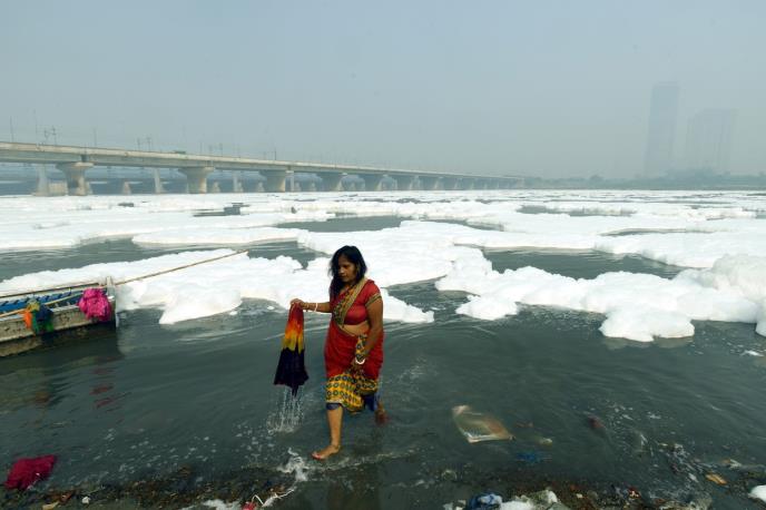 Toksična pena prekrila je deo jedne od svetih indijskih reka, čineći da izgleda kao ogromna kupka sa mehurićima.