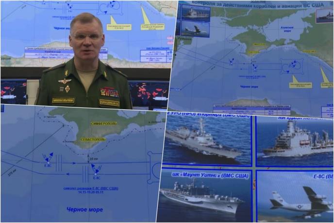 Interesantno je da Rusi na operativnoj karti američke brodove i avione vode kao "plave", a dvoje kao "crvene". Zanimljivo je da se brodovi iavioni kreću u zoni od 35 kilometara od morske granice sa Rusijom na Krimu. U istoj zoni takođe se vidi i jasno po prvi put zona patroliranja američkih E-8 Joint STARS (Joint Surveillance Target Attack Radar System). Američki avion E-8C, koji je poleteo iz vazduhoplovne baze Ramštajn u Nemačkoj, patrolirao vazdušnim prostorom iznad Crnog mora 5 sati i 13 minuta.