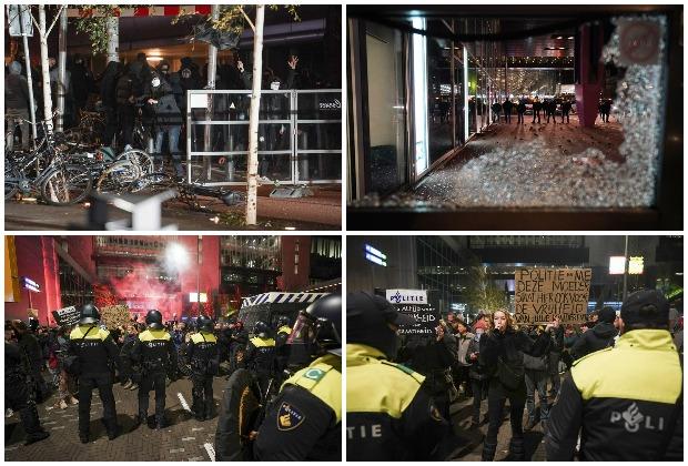 Oko 200 demonstranata sukobilo se sa policijom ispred Ministarstva pravde i bezbednosti, gde je holandski premijer Mark Rute držao konferenciju za novinare na kojoj je najavio nova ograničenja.
