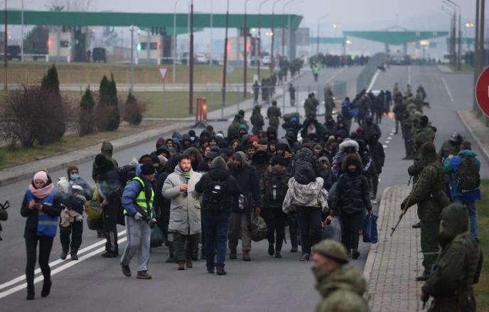 Manje grupe migranata uputile su se u utorak sa belorusko-poljske granice ka ulazu na punkt Bruzgi, gde će biti smešteni u prostorijama logističkog centra. Kako javlja dopisnik TASS-a sa lica mesta, logistički centar se nalazi na oko 1,5 km od poljske granice. Migranti koji tamo stižu dobijaju dušeke, a iz Minska se donosi 2.000 ćebadi. Takođe, pripremljeno je šest poljskih kuhinja za migrante.