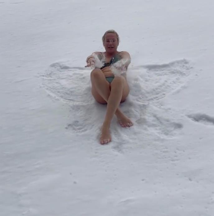 Tereškova je snimljena kako izvodi "snežne anđele" u bikiniju u Novosibirsku u Rusiji na -20 stepeni.