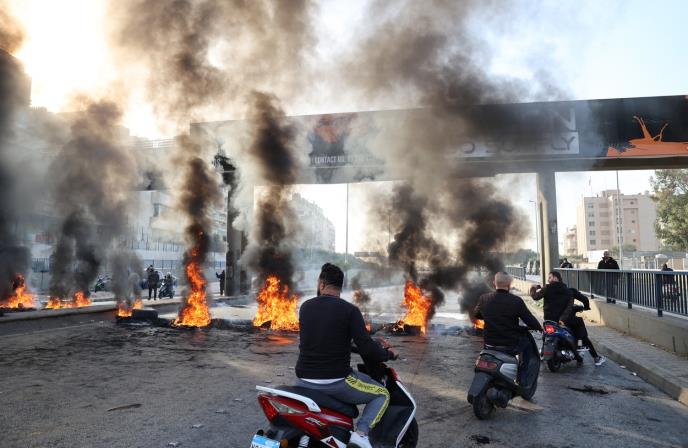 Zapaljenim gumama su blokirani putevi u centralnom Bejrutu, u luci Tripoli na severu Libana i gradu Sidonu na jugu zemlje.