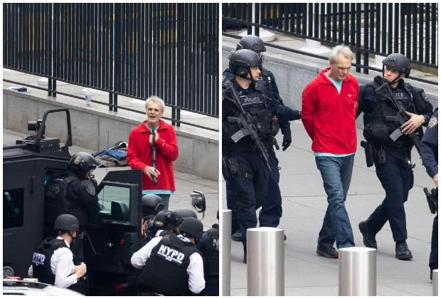 NAORUŽAN MUŠKARAC ISPRED SEDIŠTA UN UHAPŠEN: Revoltiran došao sa puškom pred zgradu! UN krivi za stanje u svetu! (VIDEO, FOTO)