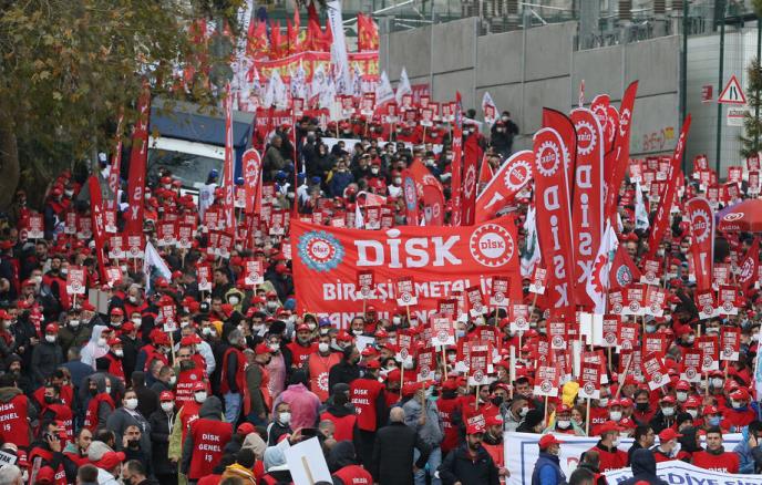 Nezadovoljnike su na ulicu pozivom izveli vodeći sindikati, reagujući na nestabilnost turske lire i inflaciju koja je, prema zvaničnim podacima iz novebra, dostigla 21,3 odsto na godišnjem novou.