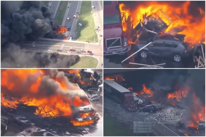 Udar šlepera u druga vozila izazvao je ogromnu eksploziju i prouzrokovao vatrenu kuglu koja je zapalila obližnje automobile i kamione i ubila četiri osobe.