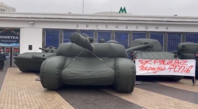 U prestonici Ukrajine, u blizini stanice metroa "Arsenalna", pojavili su se tenkovi na naduvavanje, napisao je novinar Vitalij Tisjačni na fejsbuku.