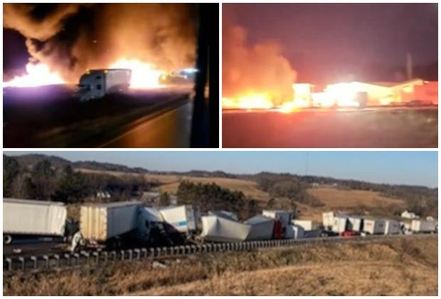MASOVNA SAOBRAĆAJKA, ZAPALJENI KAMIONI: Više od 100 vozila u KARAMBOLU u Viskonsinu zbog ledene kiše (VIDEO)