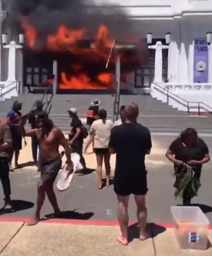 BUKNULI PROTESTI U KANBERI, ALI DOSLOVNO: Demonstranti zapalili zgradu bivšeg parlamenta u Australiji VIDEO
