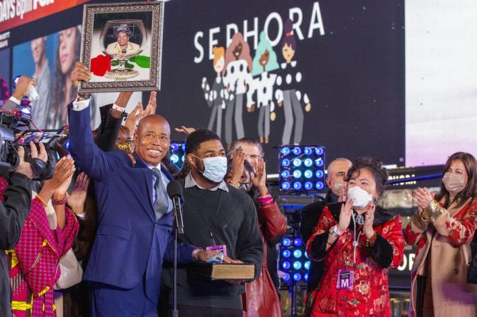 Član Demokratske partije Erik Adams položio je u novogodišnjoj noći zakletvu na Tajms skveru i time zvanično postao 110. gradonačelnik Njujorka, i drugi Afroamerikanac na ovoj funkciji.