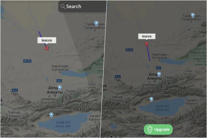 Međutim, iznanda se pojavio još jedan avion tipa Emraer Legacy 650 koji je odleteo iz Almatija i paraleno sa avionom koji je leteo tipa Bombardier Global 5000.