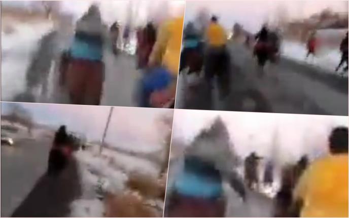 Na snimku koji je osvanuo vidi se imrpovzivana konjička četa koja galopom juri uz put..