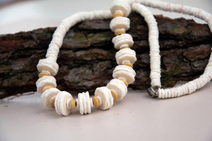 Perle od ljuske nojevog jajeta su jedan od najstarijih oblika ljudskog nakita, iako nisu bile prve koje je prihvatio homo sapijens. Naučnici veruju da su muškarci i žene počeli da se mažu crvenkastim pigmentom pre oko 200.000 godina, pre nego što su počeli da nose perle pre 75.000 godina.