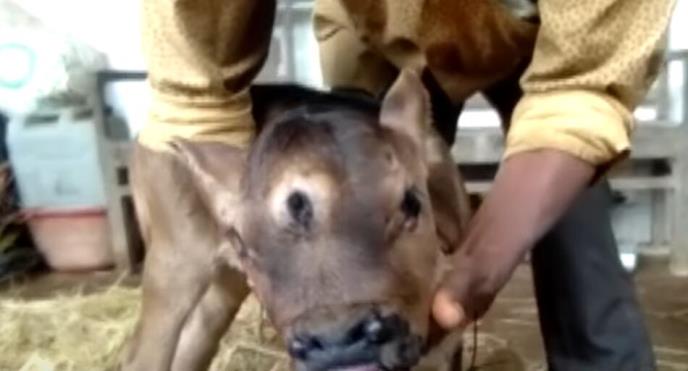 TELE SA TRI OKA I ČETIRI NOZDRVE U INDIJI - MEŠTANI VERUJU DA JE BOG! Gleda i kroz oko na čelu! VIDEO